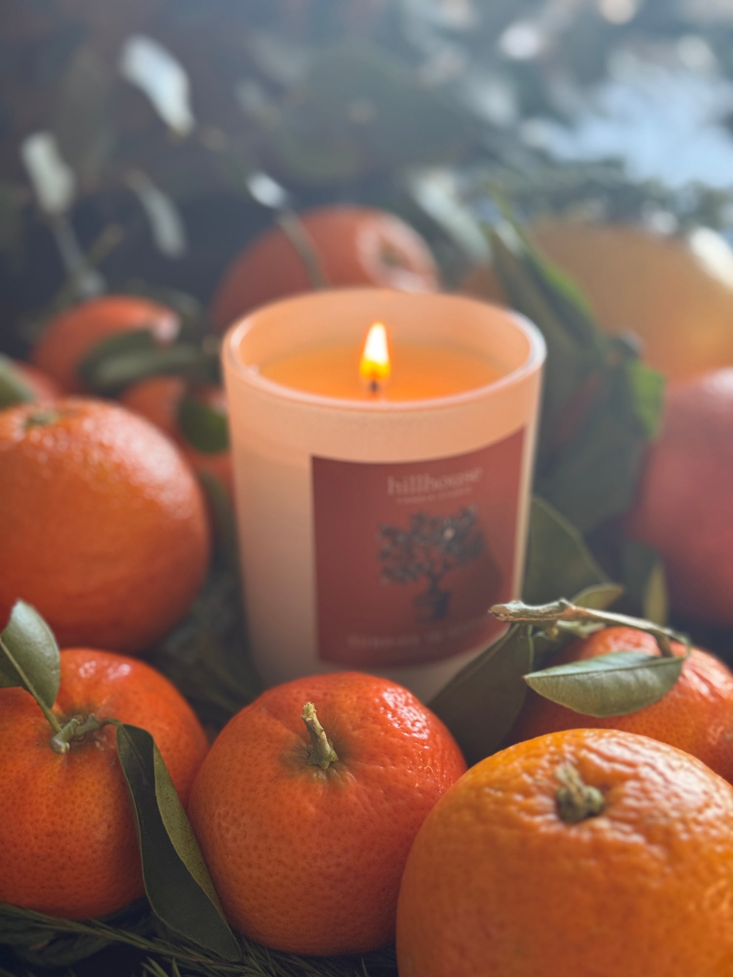 The invigorating scent of freshly plucked sweet citrus fruit, its peel kissed by the warmth of the Spanish sun, releasing a zesty fragrance that mingles with the blossoming flora beneath. This harmonious blend of sun-ripened citrus and delicate florals is distilled into a fragrance that evokes the relaxed, sun-soaked bliss of a perfect holiday escape